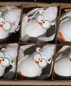 Glob bufnita alba- Acesta este bec vopsit manual iar ochii, aripile si picioarele sunt modelate din lut polimeric usor flexibil.