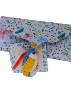 Martisor colorat, pasare, brosa, cu snur si plic unic