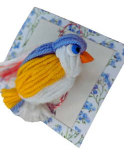 - Pasarea contine ac de brosa cu snur de martisor, cartonas cu mesaj si plic unicat.